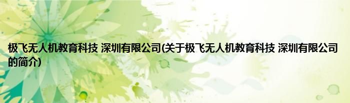 本文关于极飞无人机教育科技 深圳有限公司的简介就讲解完毕,希望对大家有所帮助。