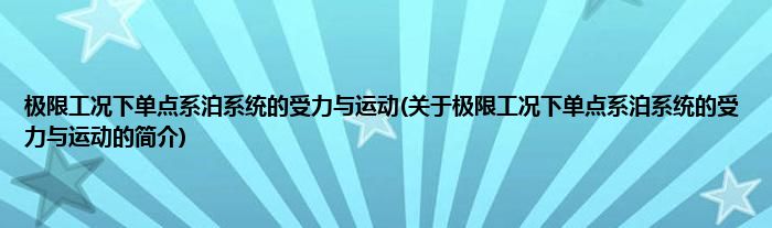 本文关于极限工况下单点系泊系统的受力与运动的简介就讲解完毕,希望对大家有所帮助。
