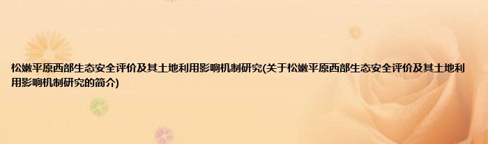 本文关于松嫩平原西部生态安全评价及其土地利用影响机制研究的简介就讲解完毕,希望对大家有所帮助。
