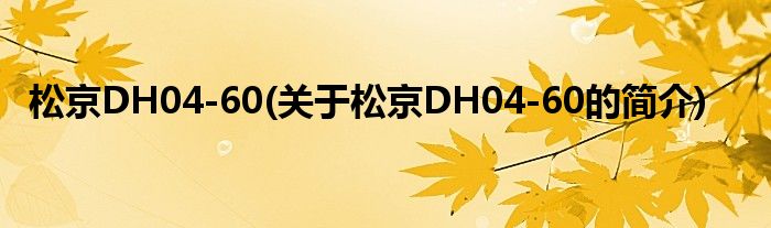 大家好,松京DH04-60,关于松京DH04-60的简介很多人还不知道,现在让我们一起来看看吧!