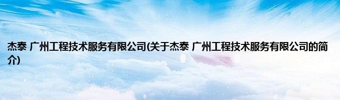 本文关于杰泰 广州工程技术服务有限公司的简介就讲解完毕,希望对大家有所帮助。