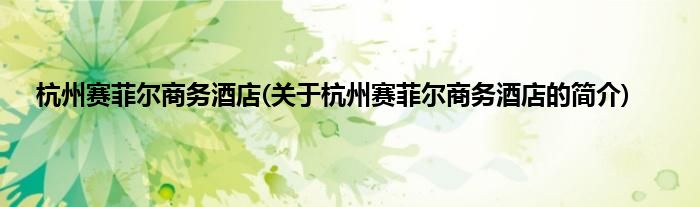 本文关于杭州赛菲尔商务酒店的简介就讲解完毕,希望对大家有所帮助。