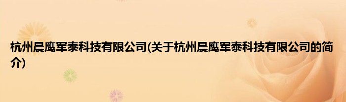 大家好,杭州晨鹰军泰科技有限公司,关于杭州晨鹰军泰科技有限公司的简介很多人还不知道,现在让我们一起来看看吧!