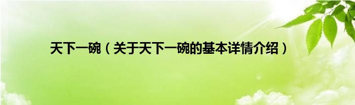 本文关于天下一碗的基本详情介绍就讲解完毕,希望对大家有所帮助。