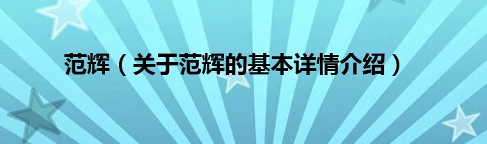 大家好我是小蝌蚪,范辉,关于范辉的基本详情介绍很多人还不知道,那么现在让我们一起来看看吧!