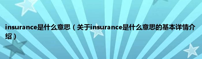 本文关于insurance是什么意思的基本详情介绍就讲解完毕,希望对大家有所帮助。