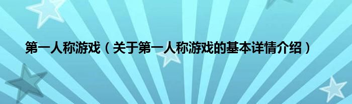 本文关于第一人称游戏的基本详情介绍就讲解完毕,希望对大家有所帮助。