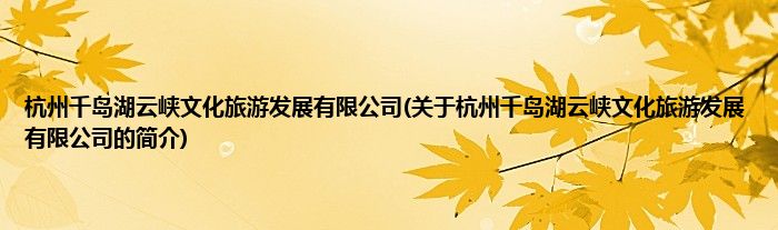大家好,杭州千岛湖云峡文化旅游发展有限公司,关于杭州千岛湖云峡文化旅游发展有限公司的简介很多人还不知道,现在让我们一起来看看吧!
