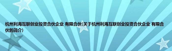 本文关于杭州利海互联创业投资合伙企业 有限合伙的简介就讲解完毕,希望对大家有所帮助。