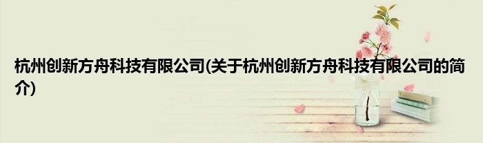 本文关于杭州创新方舟科技有限公司的简介就讲解完毕,希望对大家有所帮助。