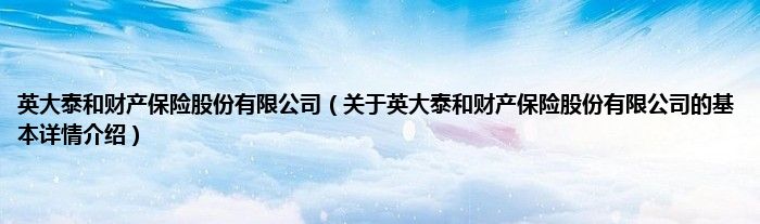 本文关于英大泰和财产保险股份有限公司的基本详情介绍就讲解完毕,希望对大家有所帮助。