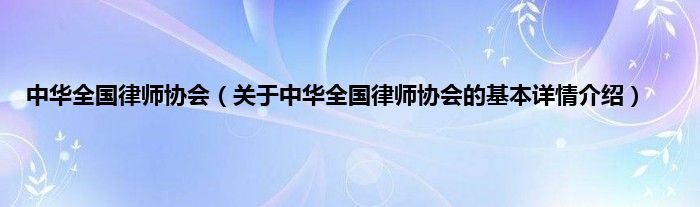 本文关于中华全国律师协会的基本详情介绍就讲解完毕,希望对大家有所帮助。