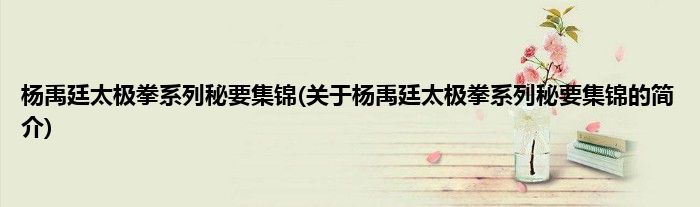 本文关于杨禹廷太极拳系列秘要集锦的简介就讲解完毕,希望对大家有所帮助。