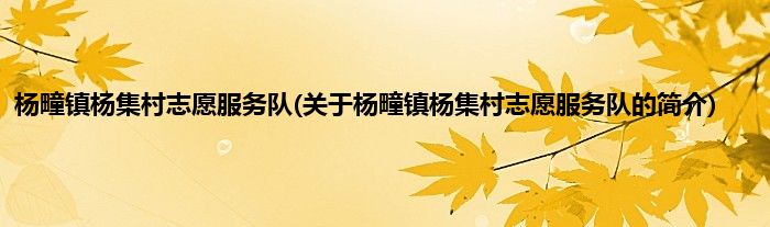 本文关于杨疃镇杨集村志愿服务队的简介就讲解完毕,希望对大家有所帮助。