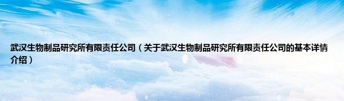 本文关于武汉生物制品研究所有限责任公司的基本详情介绍就讲解完毕,希望对大家有所帮助。