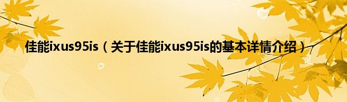本文关于佳能ixus95is的基本详情介绍就讲解完毕,希望对大家有所帮助。
