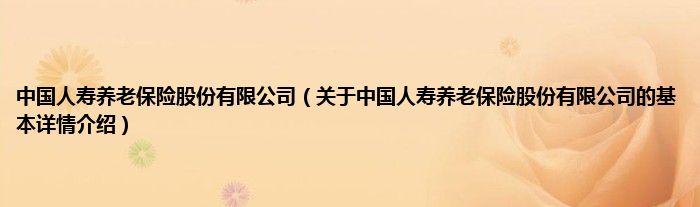 本文关于中国人寿养老保险股份有限公司的基本详情介绍就讲解完毕,希望对大家有所帮助。
