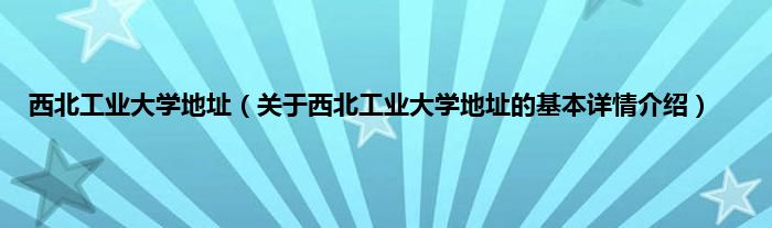 本文关于西北工业大学地址的基本详情介绍就讲解完毕,希望对大家有所帮助。