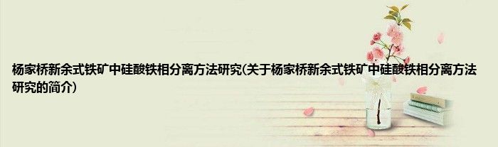 杨家桥新余式铁矿中硅酸铁相分离方法研究(关于杨家桥新余式铁矿中硅酸铁相分离方法研究的简介)