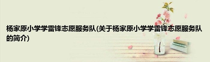 大家好,杨家原小学学雷锋志愿服务队,关于杨家原小学学雷锋志愿服务队的简介很多人还不知道,现在让我们一起来看看吧!