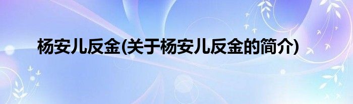 大家好,杨安儿反金,关于杨安儿反金的简介很多人还不知道,现在让我们一起来看看吧!