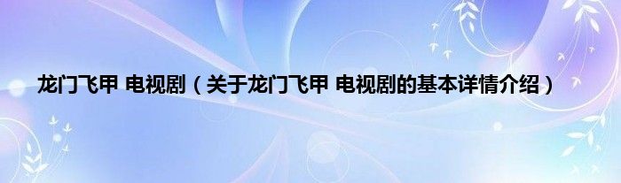 本文关于龙门飞甲 电视剧的基本详情介绍就讲解完毕,希望对大家有所帮助。