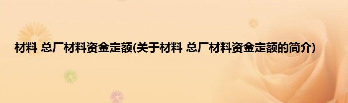 本文关于材料 总厂材料资金定额的简介就讲解完毕,希望对大家有所帮助。