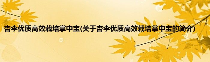 本文关于杏李优质高效栽培掌中宝的简介就讲解完毕,希望对大家有所帮助。