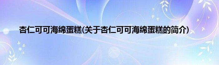 本文关于杏仁可可海绵蛋糕的简介就讲解完毕,希望对大家有所帮助。