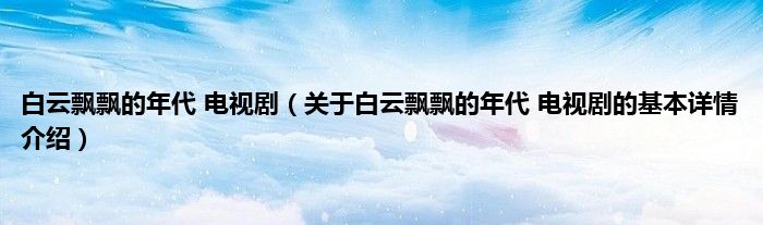 本文关于白云飘飘的年代 电视剧的基本详情介绍就讲解完毕,希望对大家有所帮助。
