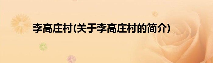 本文关于李高庄村的简介就讲解完毕,希望对大家有所帮助。