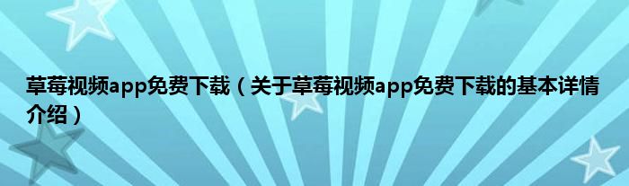 本文关于草莓视频app免费下载的基本详情介绍就讲解完毕,希望对大家有所帮助。