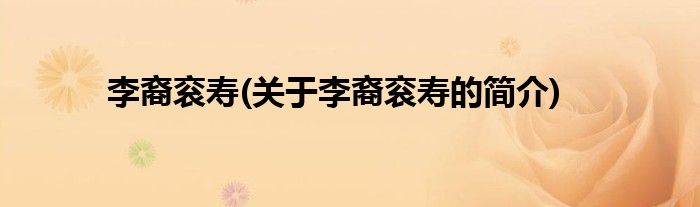 本文关于李裔衮寿的简介就讲解完毕,希望对大家有所帮助。