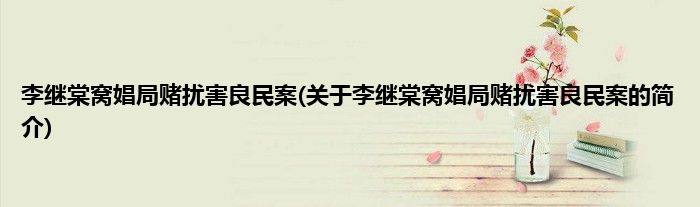 本文关于李继棠窝娼局赌扰害良民案的简介就讲解完毕,希望对大家有所帮助。