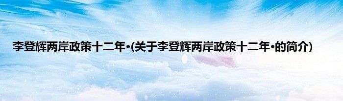 大家好,李登辉两岸政策十二年·,关于李登辉两岸政策十二年·的简介很多人还不知道,现在让我们一起来看看吧!