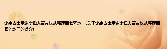 本文关于李宗古出示谢李道人苕帚杖从蒋彦回乞葬地二的简介就讲解完毕,希望对大家有所帮助。