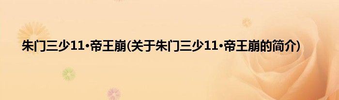 本文关于朱门三少11·帝王崩的简介就讲解完毕,希望对大家有所帮助。