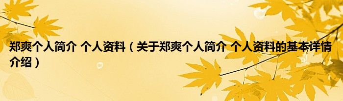 本文关于郑爽个人简介 个人资料的基本详情介绍就讲解完毕,希望对大家有所帮助。