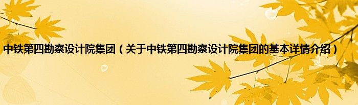 本文关于中铁第四勘察设计院集团的基本详情介绍就讲解完毕,希望对大家有所帮助。