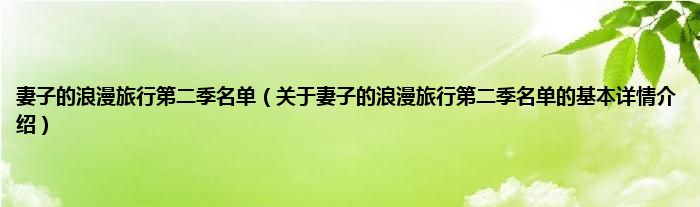 本文关于妻子的浪漫旅行第二季名单的基本详情介绍就讲解完毕,希望对大家有所帮助。