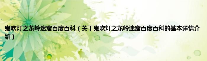 本文关于鬼吹灯之龙岭迷窟百度百科的基本详情介绍就讲解完毕,希望对大家有所帮助。