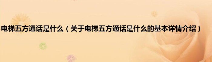 本文关于电梯五方通话是什么的基本详情介绍就讲解完毕,希望对大家有所帮助。