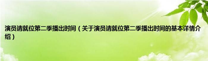 本文关于演员请就位第二季播出时间的基本详情介绍就讲解完毕,希望对大家有所帮助。