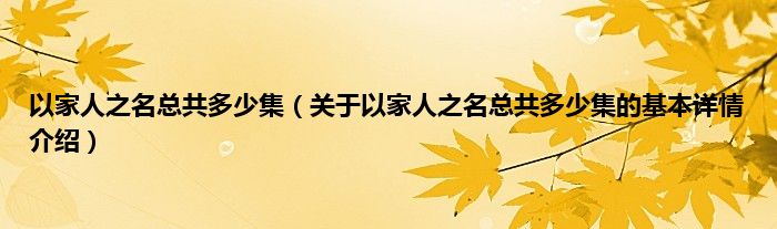 本文关于以家人之名总共多少集的基本详情介绍就讲解完毕,希望对大家有所帮助。