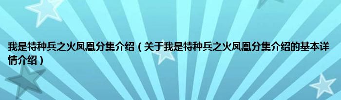 本文关于我是特种兵之火凤凰分集介绍的基本详情介绍就讲解完毕,希望对大家有所帮助。
