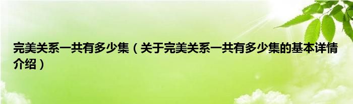 本文关于完美关系一共有多少集的基本详情介绍就讲解完毕,希望对大家有所帮助。