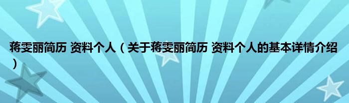本文关于蒋雯丽简历 资料个人的基本详情介绍就讲解完毕,希望对大家有所帮助。