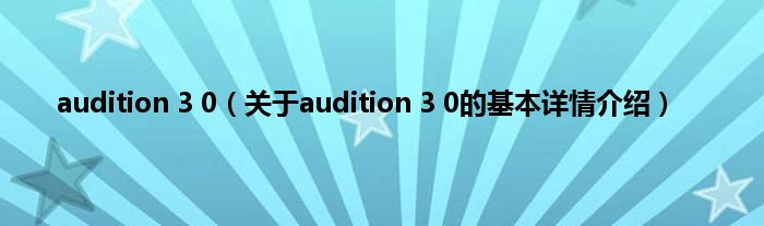 本文关于audition 3 0的基本详情介绍就讲解完毕,希望对大家有所帮助。