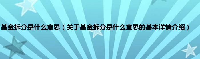 本文关于基金拆分是什么意思的基本详情介绍就讲解完毕,希望对大家有所帮助。
