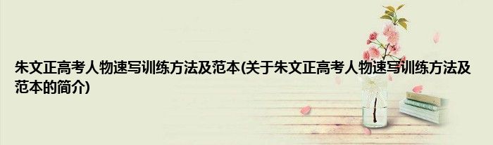 1、 《朱文正高考人物速写训练方法及范本》是中国纺织出版社在2010年7月1日出版的图书。